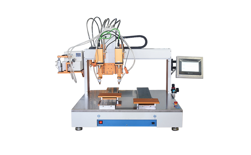 6,雙電批同時工作鎖付設(shè)備效率高,速度快,是普通螺絲機(jī)的雙倍速度,占地面積小。